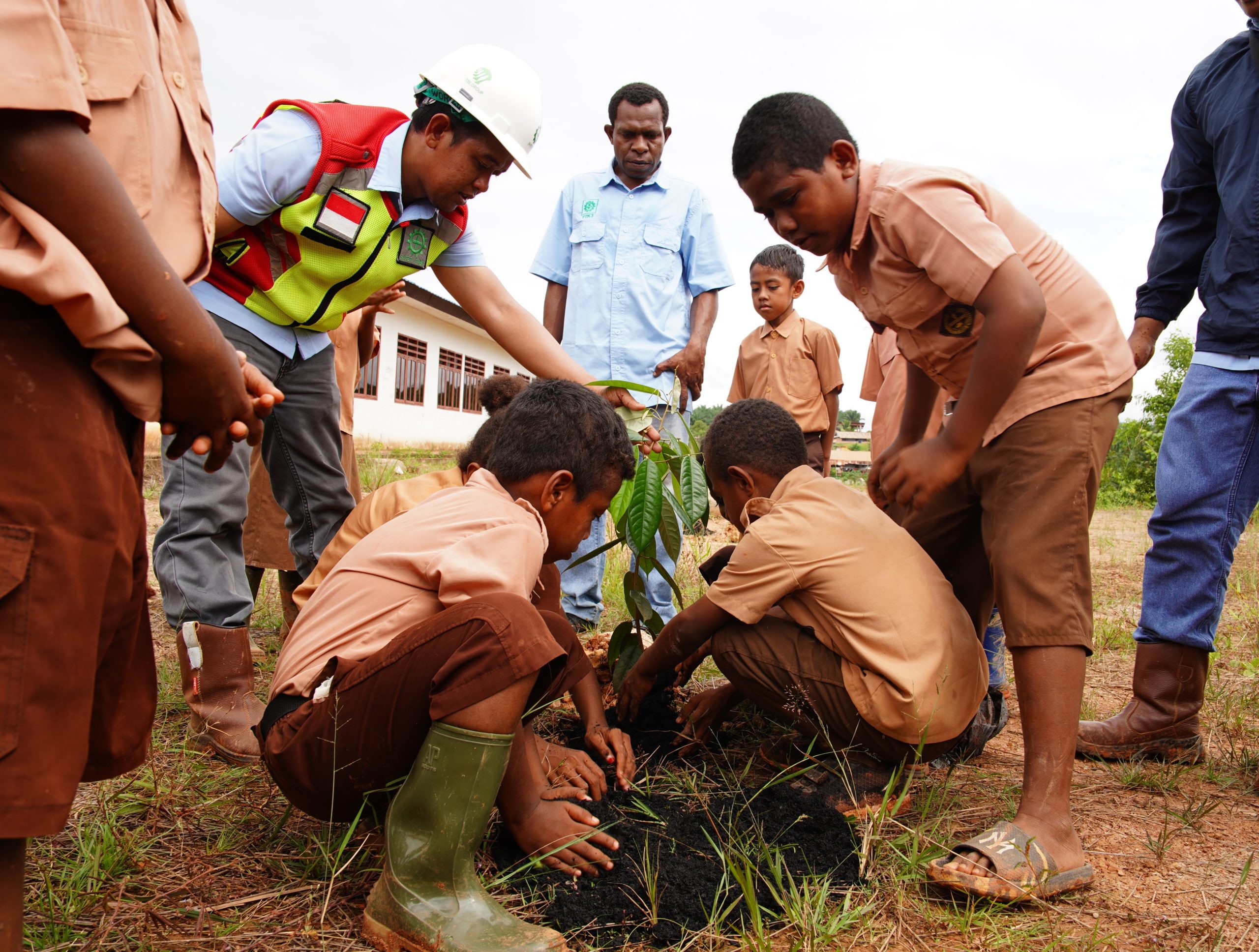 PAPUA SELATAN – Suasana di halaman SDN Kigorun, Distrik Ulilin, Kabupaten Merauke, tampak semarak pada Rabu (26/11/2025) pagi saat puluhan siswa-siswi mengikuti kegiatan penanaman pohon yang digagas oleh PT Berkat Cipta Abadi (BCA).